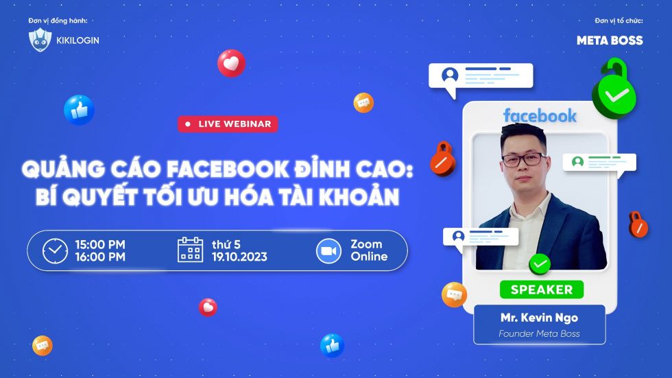 Ngày 19/10/2023, Meta Boss cùng đơn vị đồng hành là Kiki Login đã kết hợp và tổ chức chuỗi Hội thảo trực tuyến: “Quảng cáo Facebook đỉnh cao: Bí quyết Tối ưu hóa Tài khoản” .