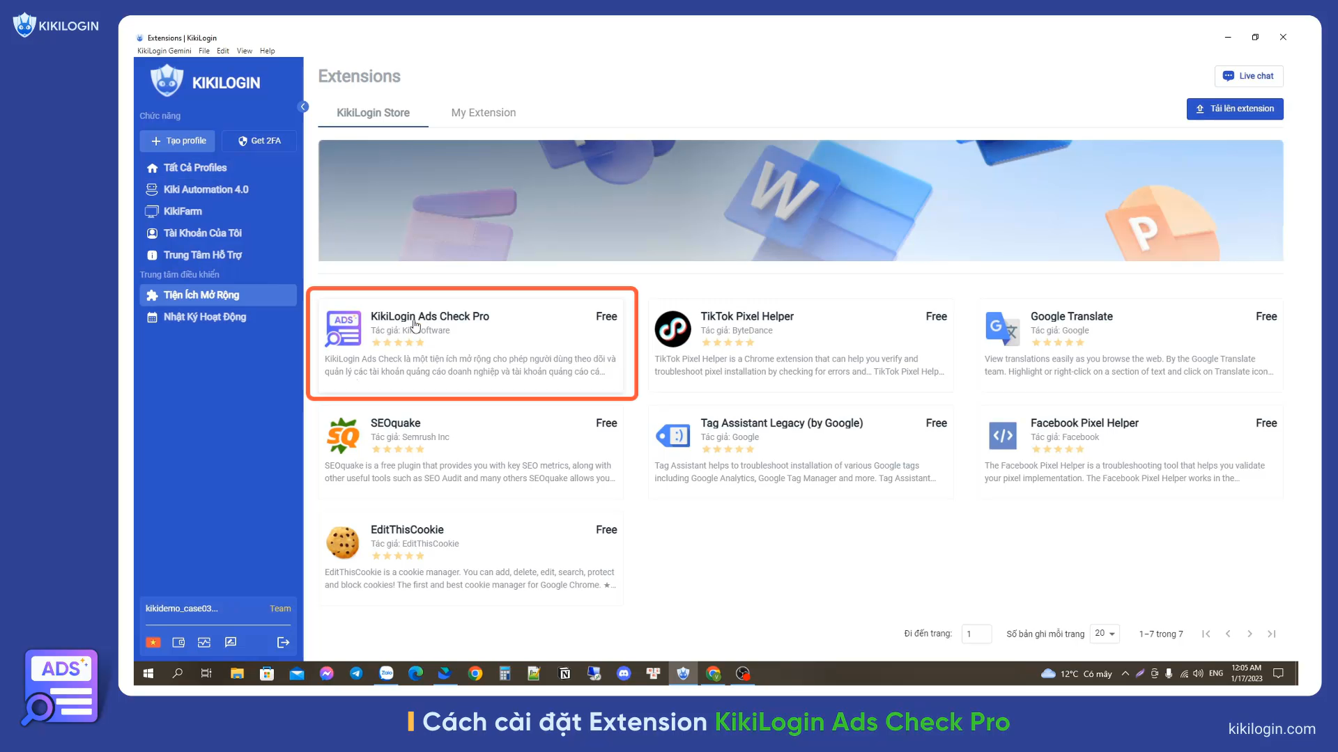 II.Cách cài extension Kiki Ads Check trong phần mềm KikiLogin