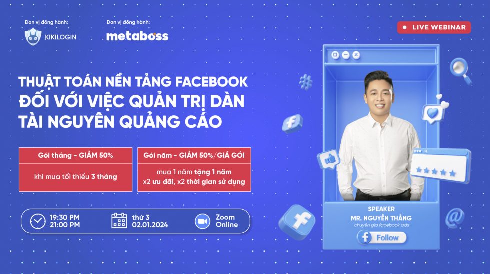 Ngày 2/1 vừa qua, webinar với chủ đề “Thuật toán nền tảng Facebook đối với việc quản trị dàn tài nguyên quảng cáo” do MetaBoss kết hợp KikiLogin tổ chức đã nhận được những phản hồi tích cực từ đông đảo khách hàng.
