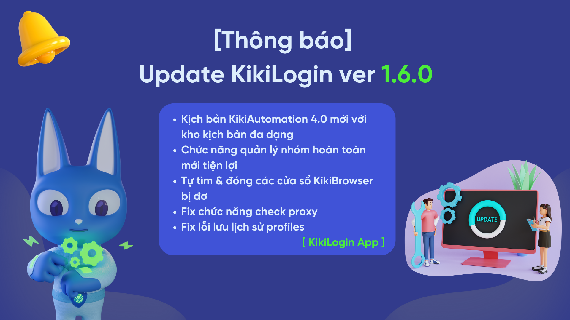 Thông báo update phiên bản mới KikiLogin 1.6.0.